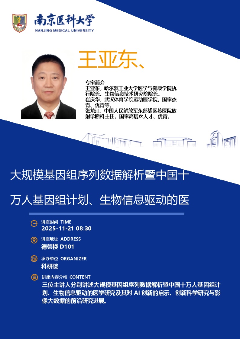 大规模基因组序列数据解析暨中国十万人基因组计划、生物信息驱动的医学研究及对AI创新的启示、创新科学研究与影像大数据