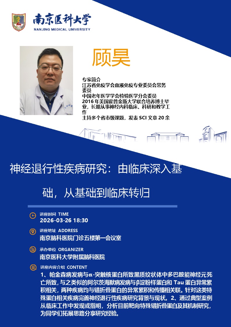神经退行性疾病研究:由临床深入基础,从基础到临床转归