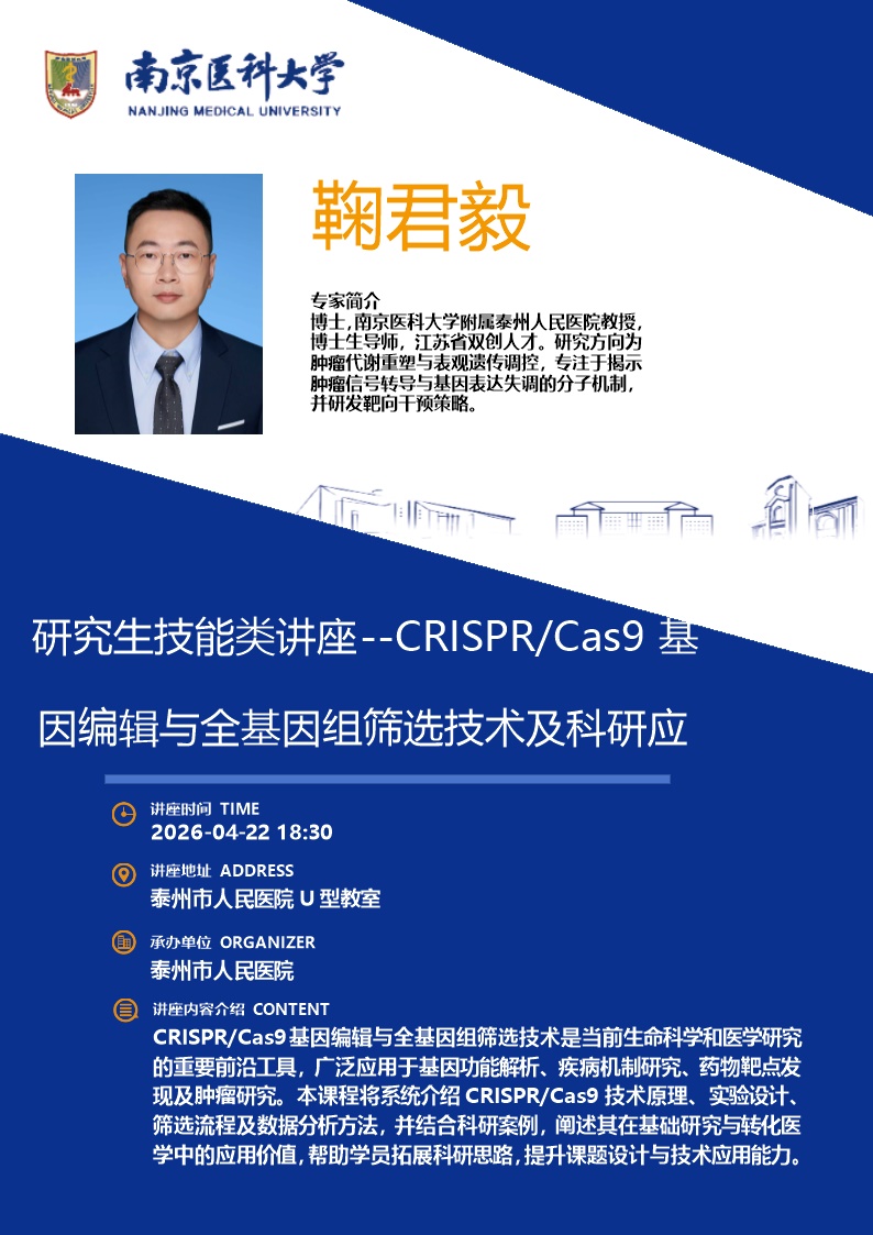 研究生技能类讲座--CRISPR/Cas9基因编辑与全基因组筛选技术及科研应用
